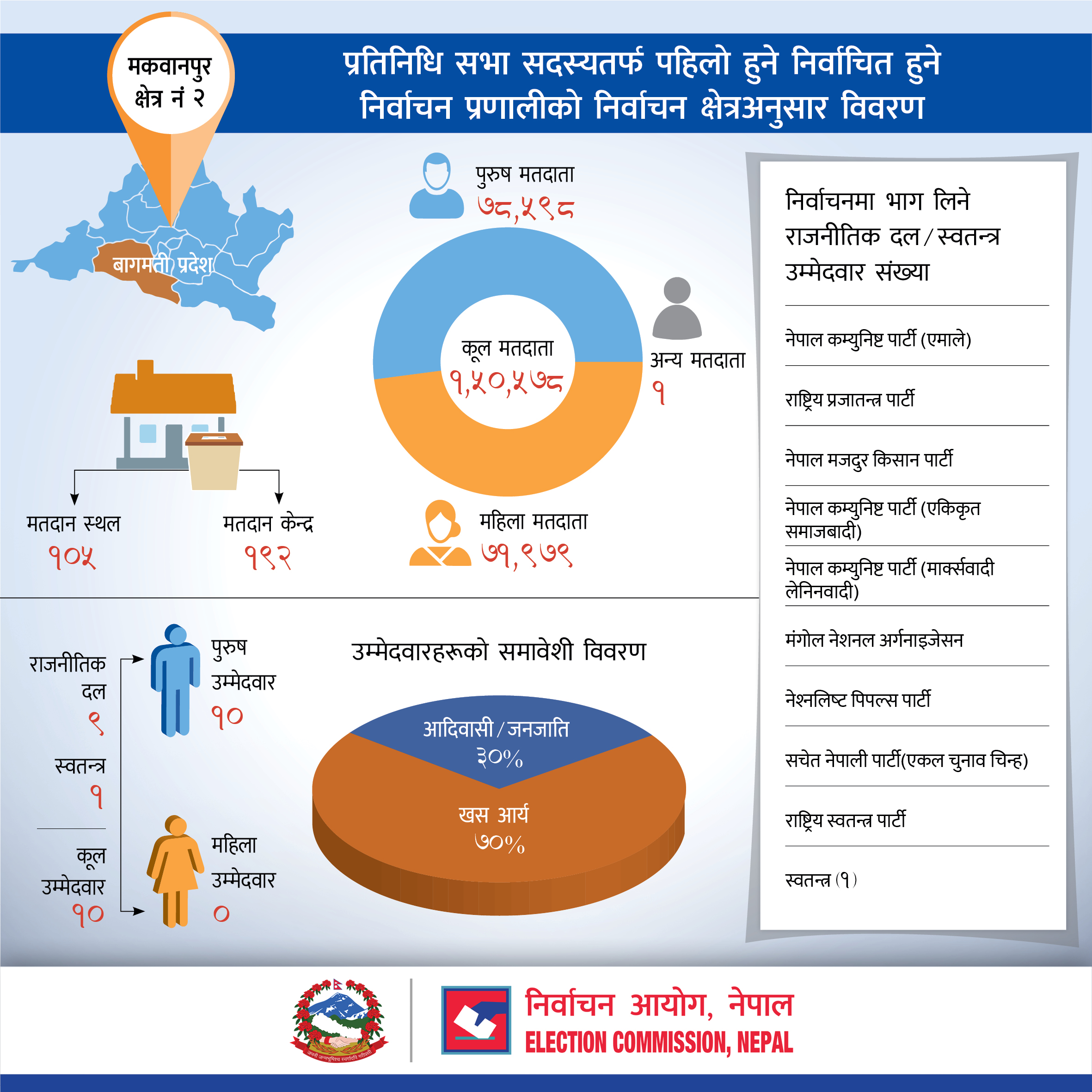 प्रतिनिधि सभा सदस्यतर्फ पहिलो हुने निर्वाचित हुने निर्वाचन प्रणालीको मकवानपुर जिल्लाको निर्वाचन क्षेत्रअनुसार विवरण