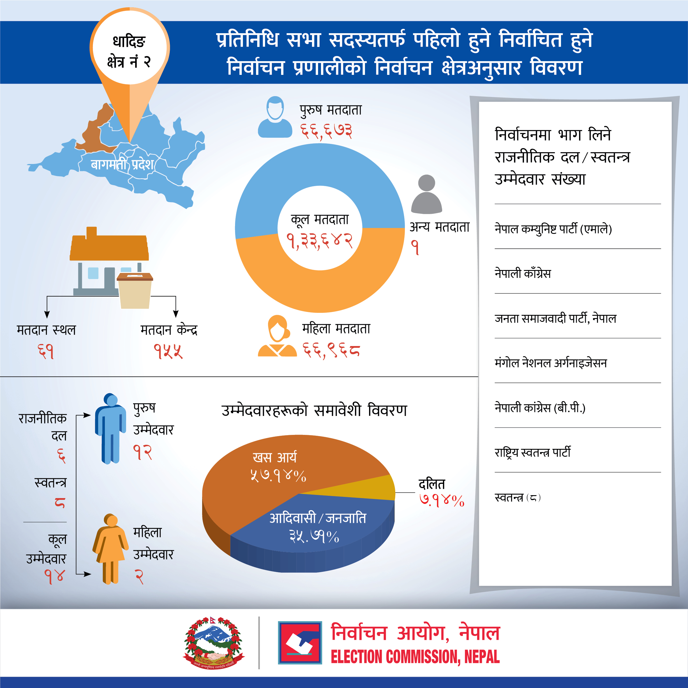 प्रतिनिधि सभा सदस्यतर्फ पहिलो हुने निर्वाचित हुने निर्वाचन प्रणालीको धादिङ जिल्लाको निर्वाचन क्षेत्रअनुसार विवरण