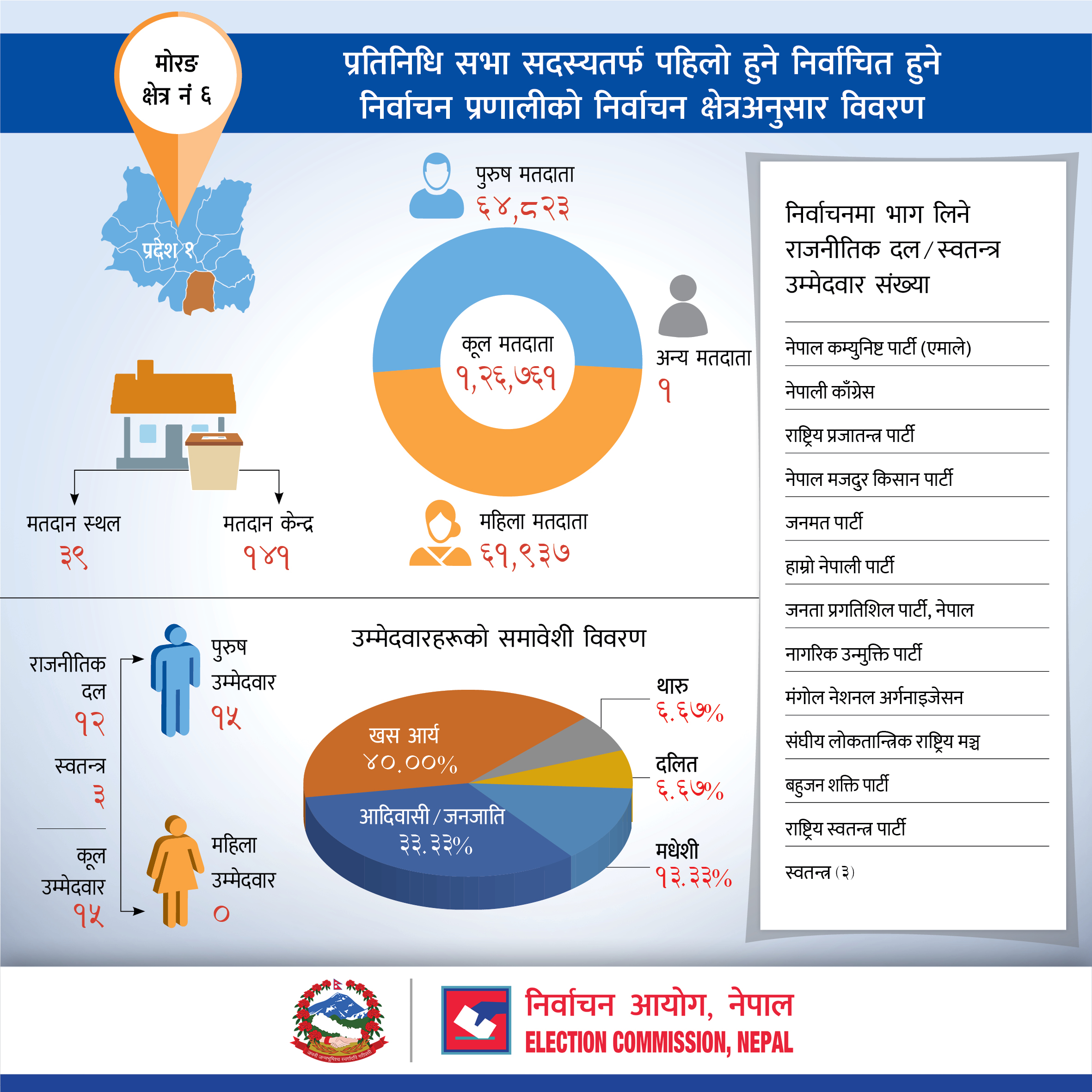 प्रतिनिधि सभा सदस्यतर्फ पहिलो हुने निर्वाचित हुने निर्वाचन प्रणालीको मोरङ जिल्लाको निर्वाचन क्षेत्रअनुसार विवरण