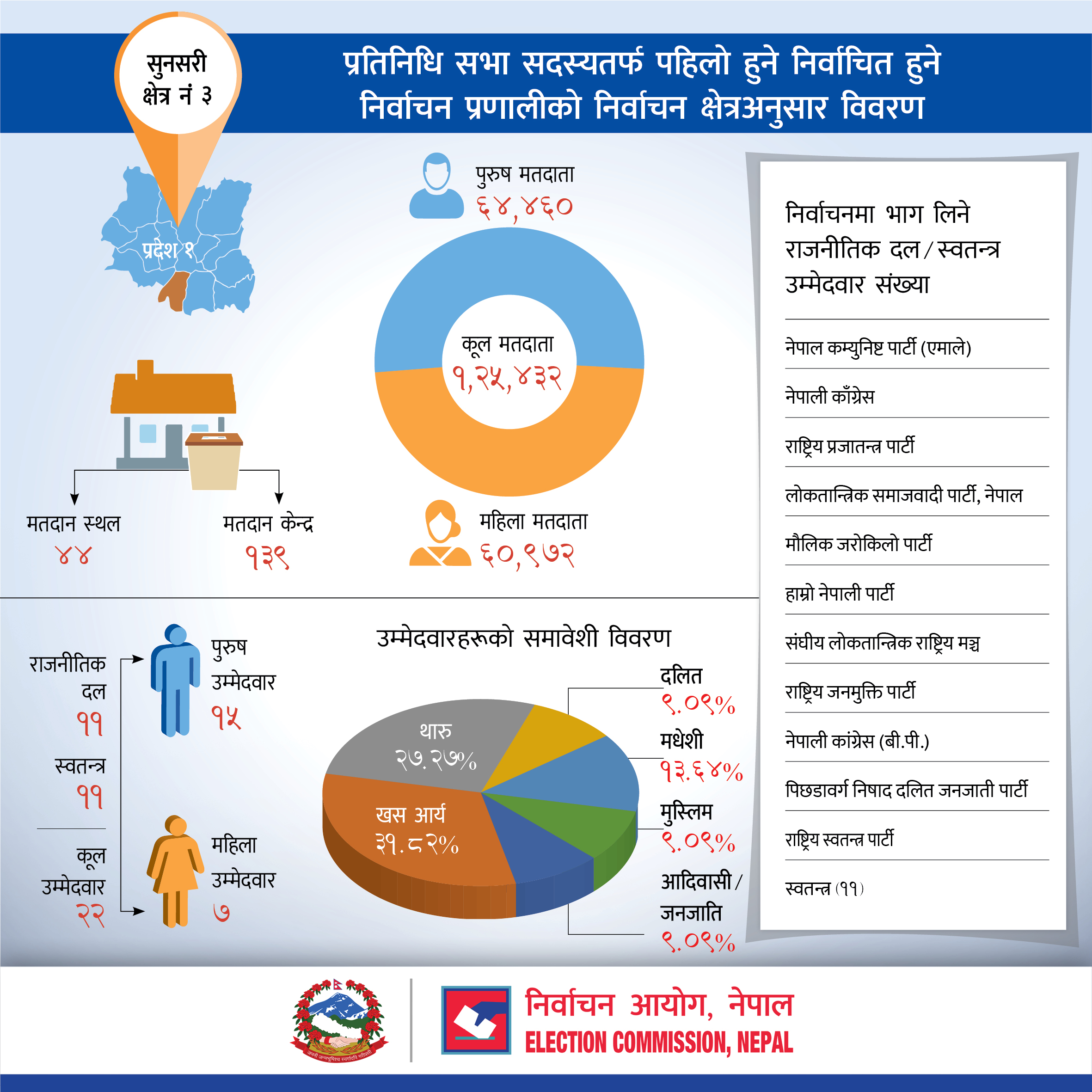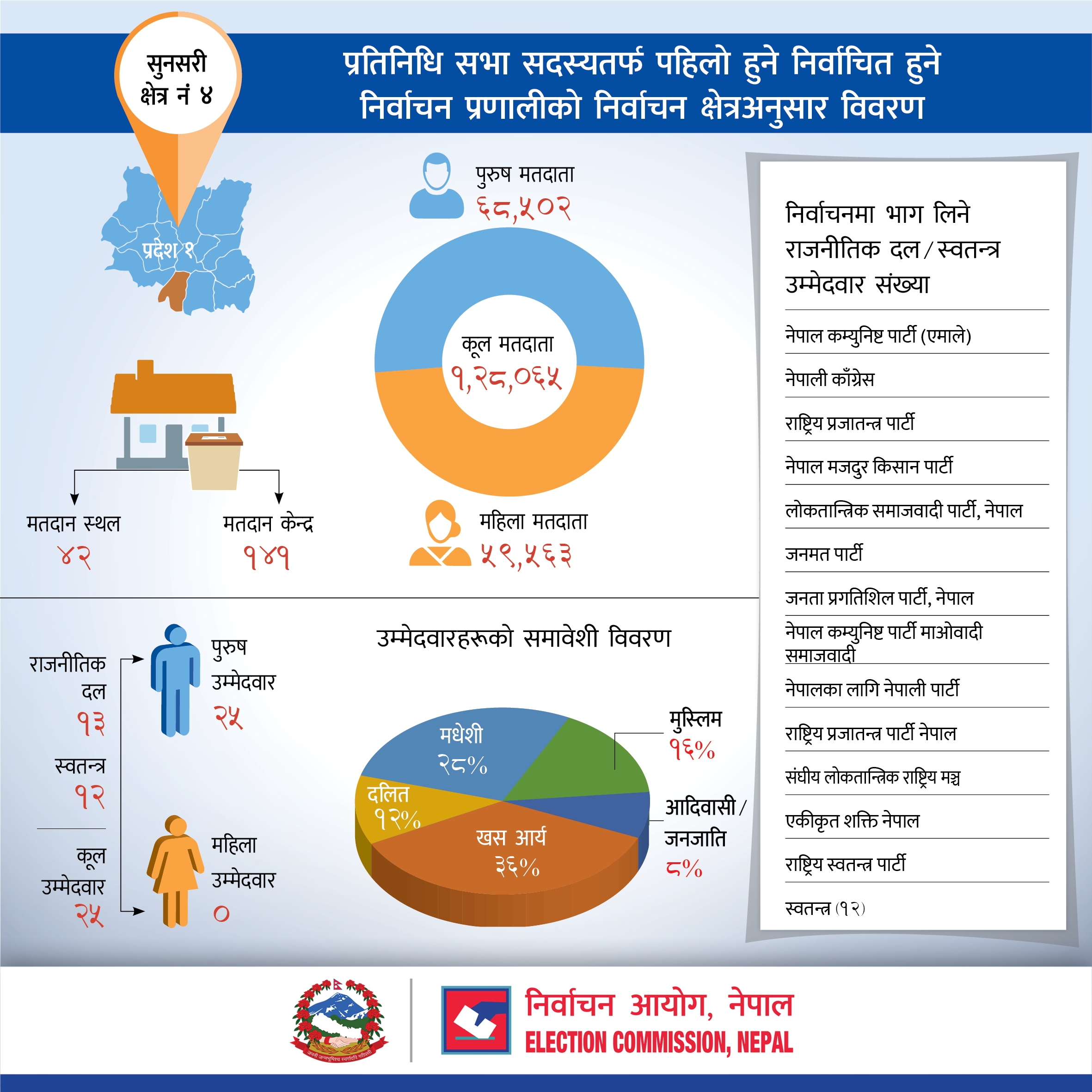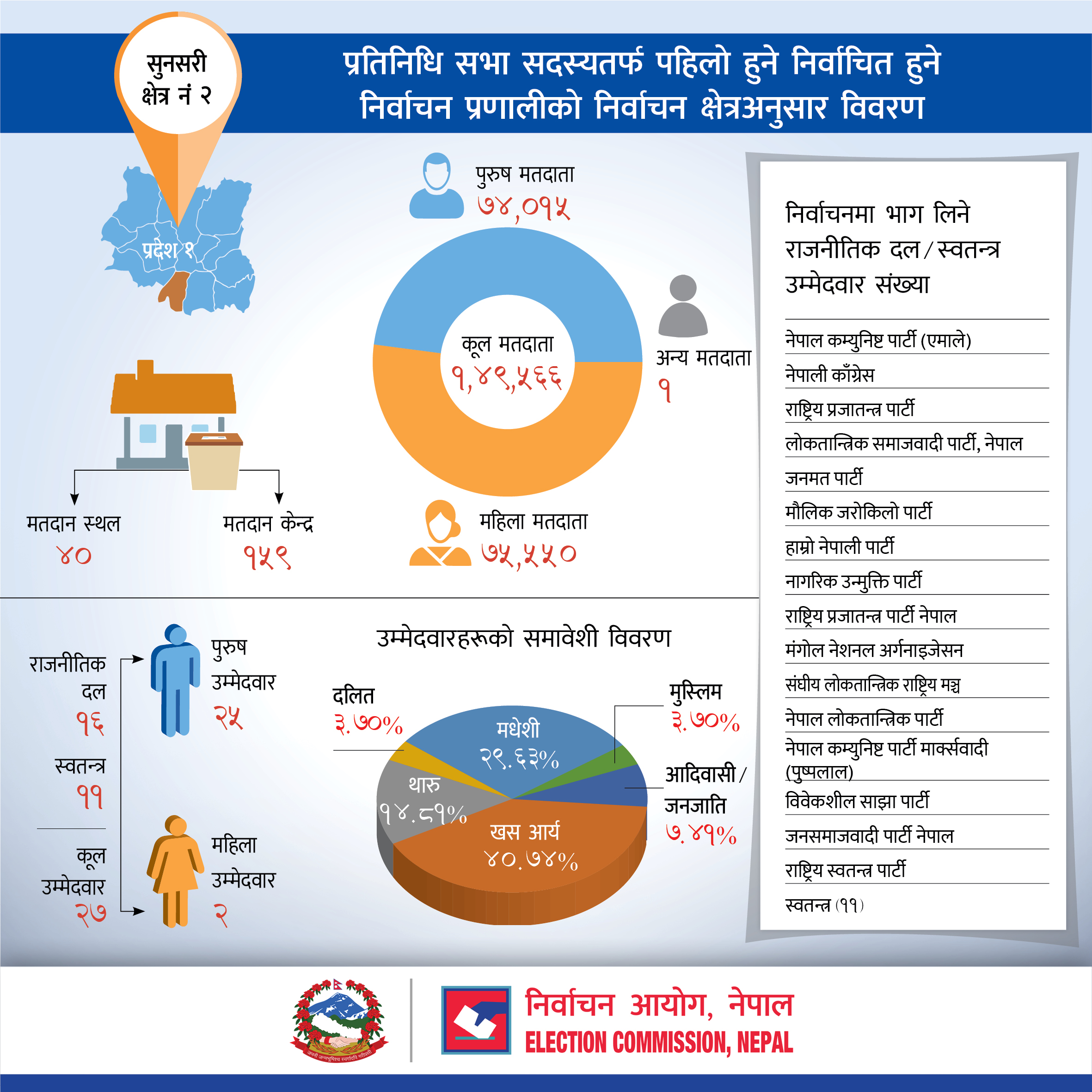 प्रतिनिधि सभा सदस्यतर्फ पहिलो हुने निर्वाचित हुने निर्वाचन प्रणालीको सुनसरी जिल्लाको निर्वाचन क्षेत्रअनुसार विवरण