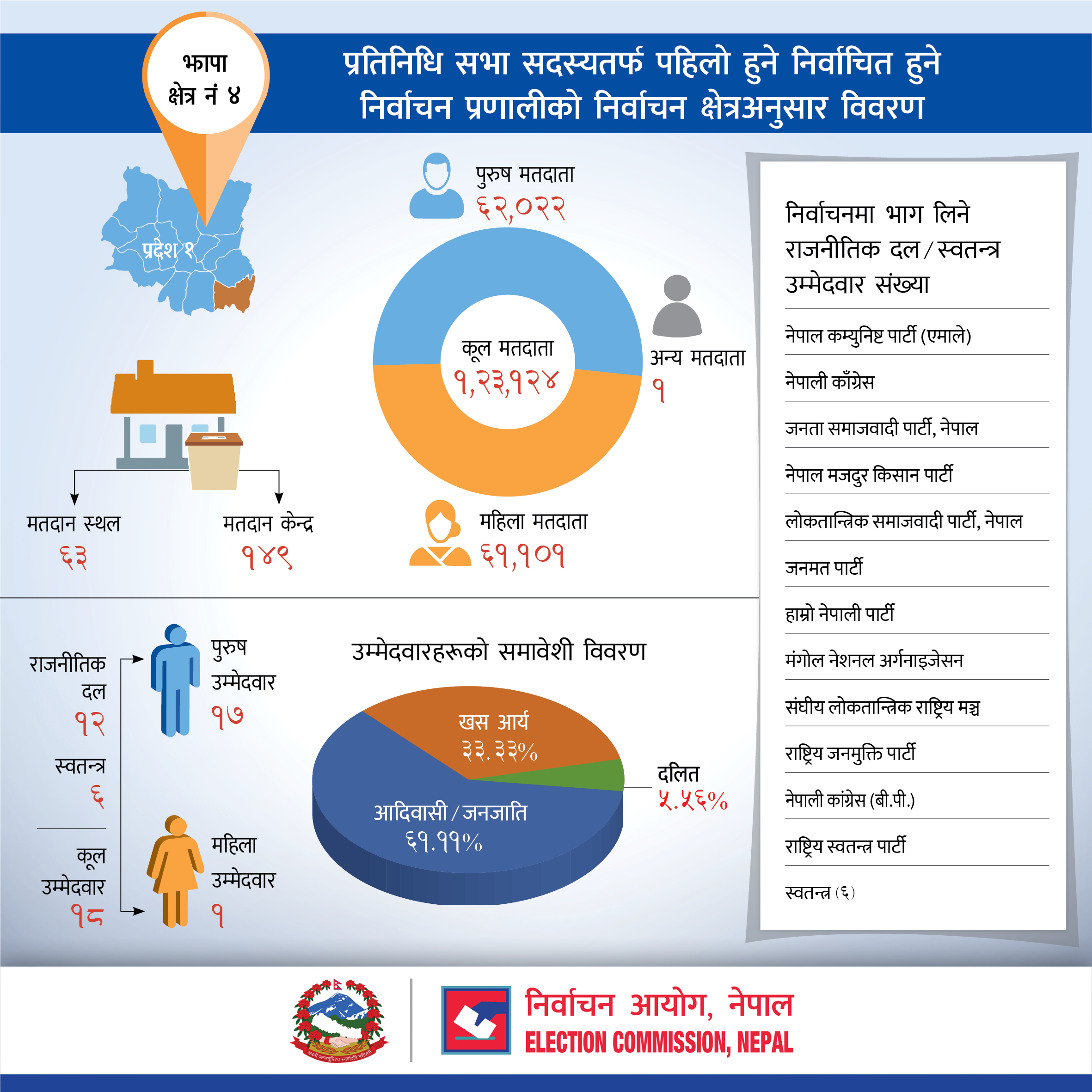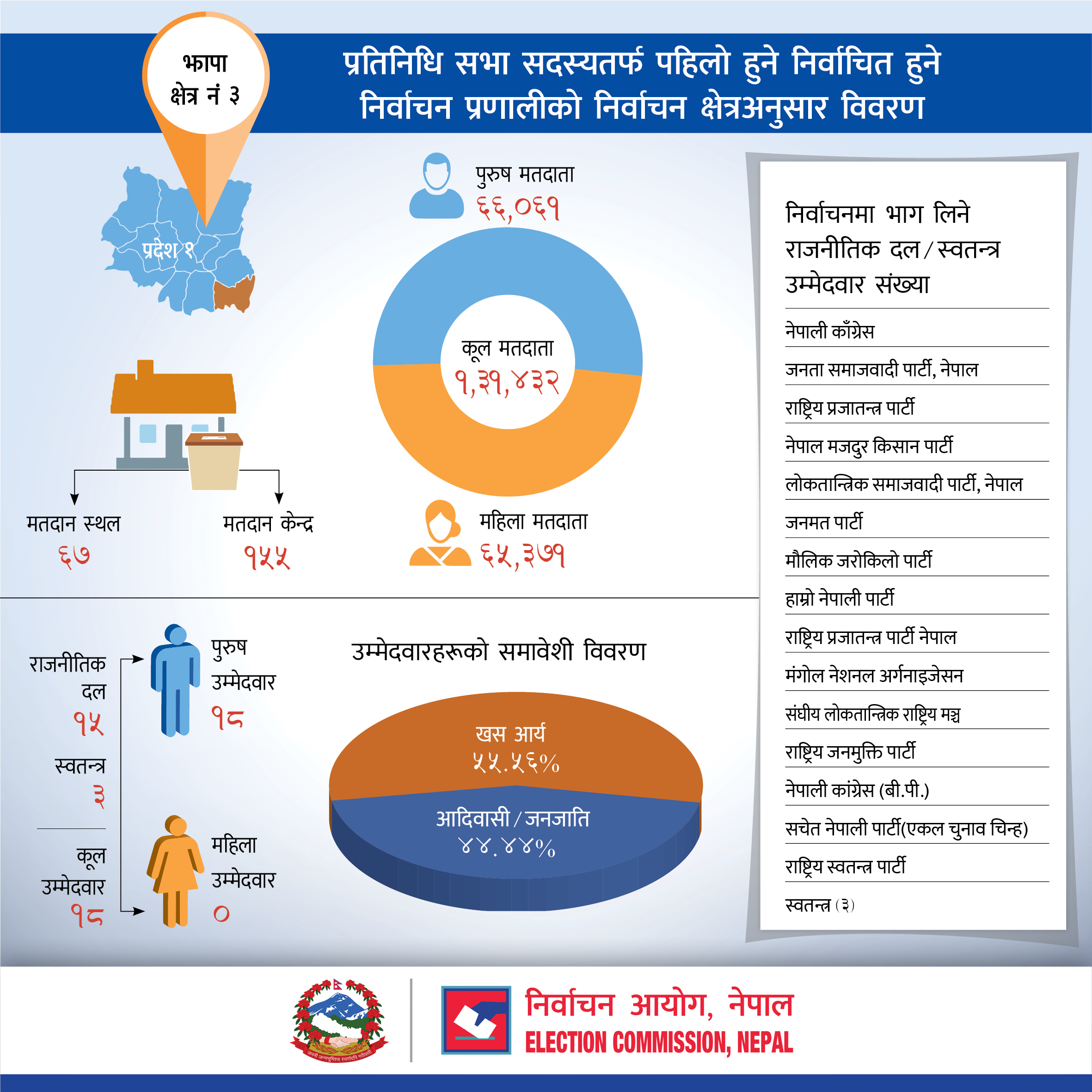 प्रतिनिधि सभा सदस्यतर्फ पहिलो हुने निर्वाचित हुने निर्वाचन प्रणालीको झापा जिल्लाको निर्वाचन क्षेत्रअनुसार विवरण