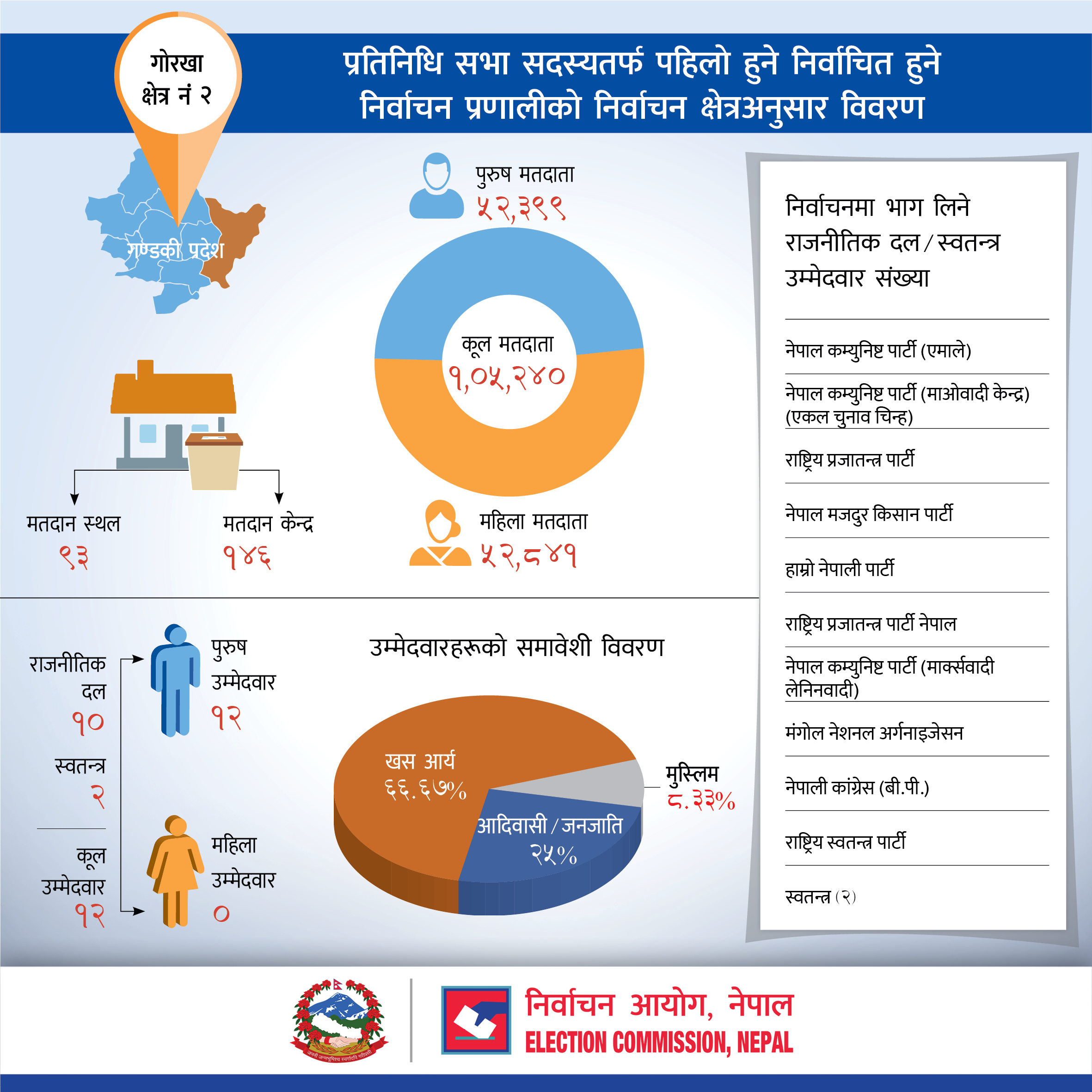 प्रतिनिधि सभा सदस्यतर्फ पहिलो हुने निर्वाचित हुने निर्वाचन प्रणालीको गोरखा जिल्लाको निर्वाचन क्षेत्रअनुसार विवरण