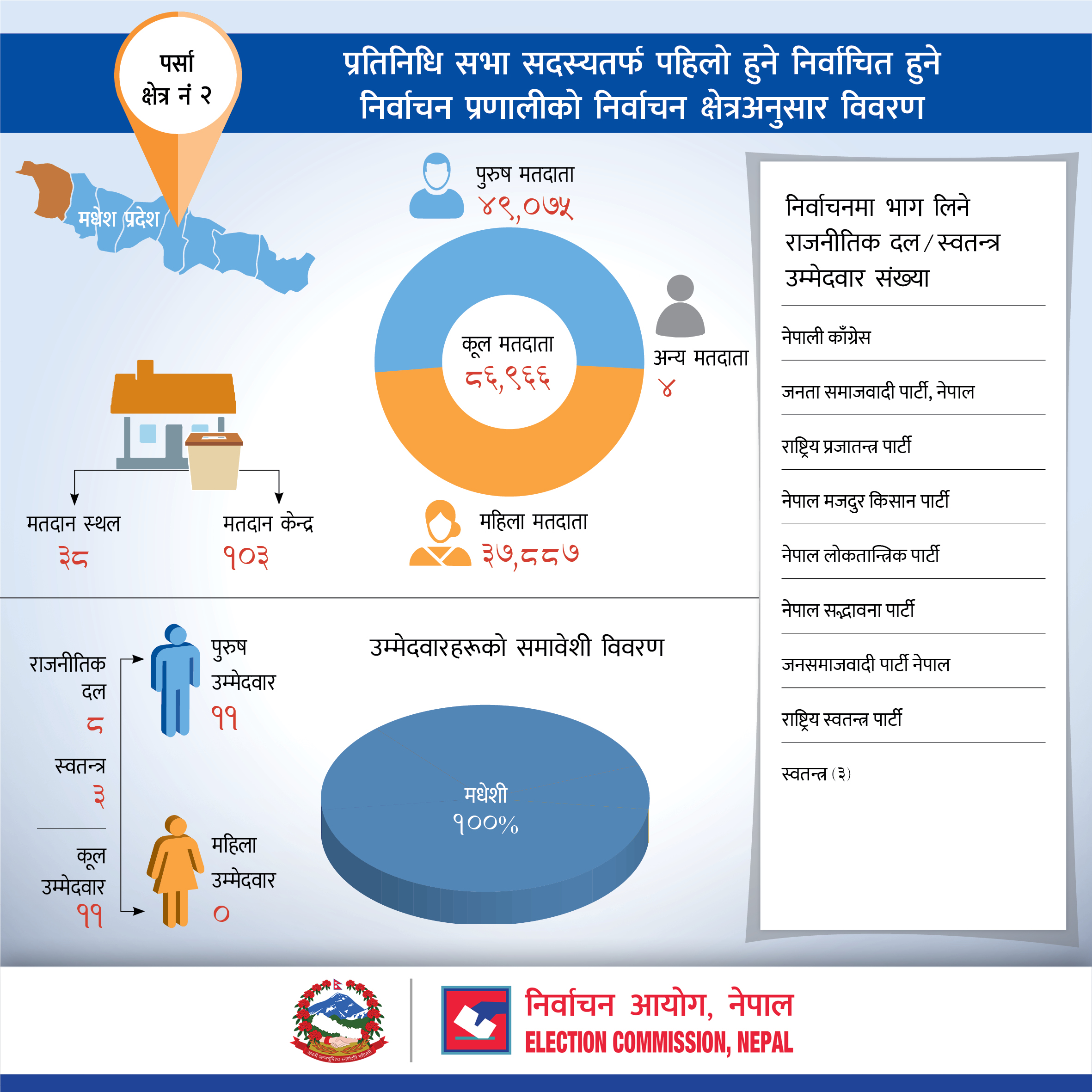 प्रतिनिधि सभा सदस्यतर्फ पहिलो हुने निर्वाचित हुने निर्वाचन प्रणालीको पर्सा जिल्लाको निर्वाचन क्षेत्रअनुसार विवरण