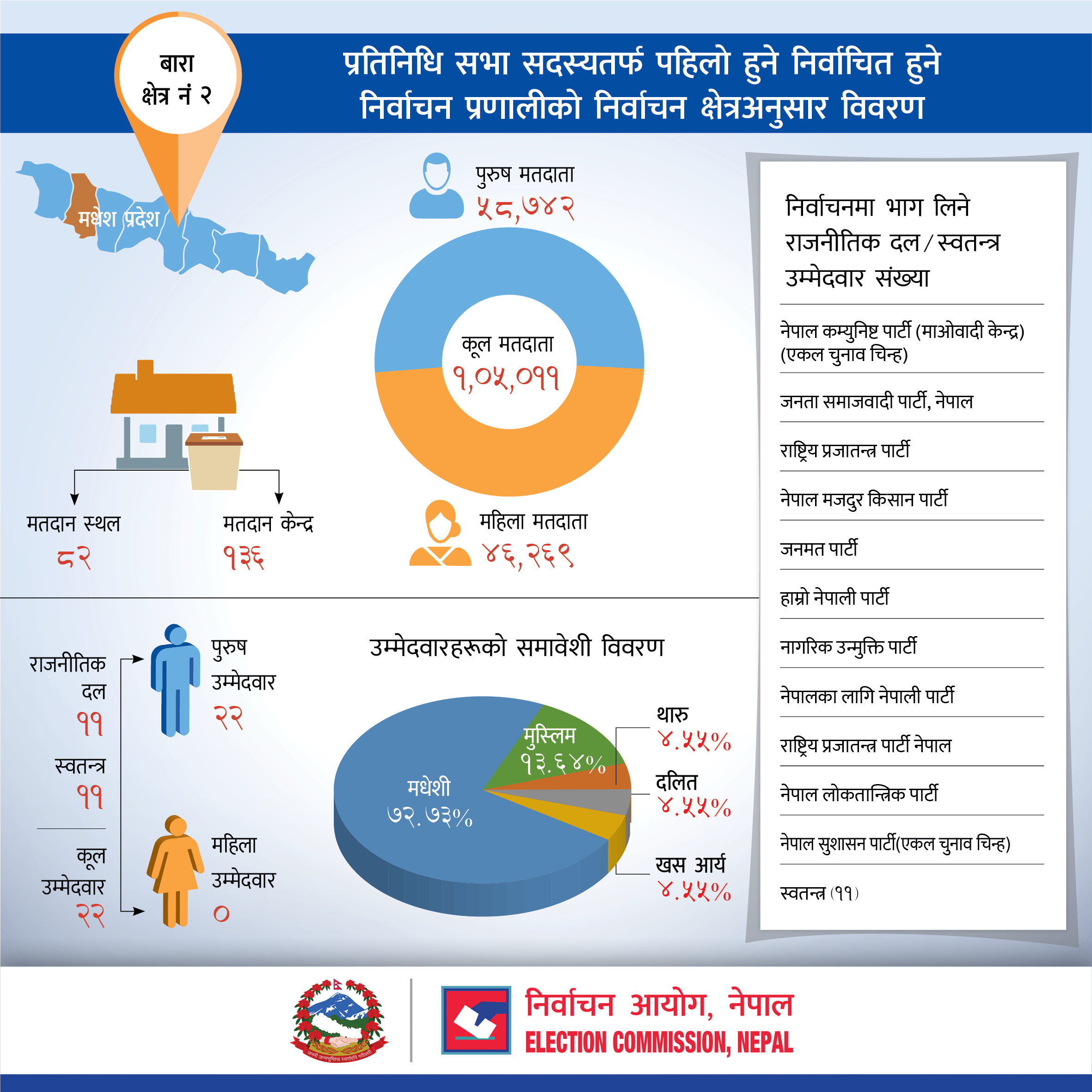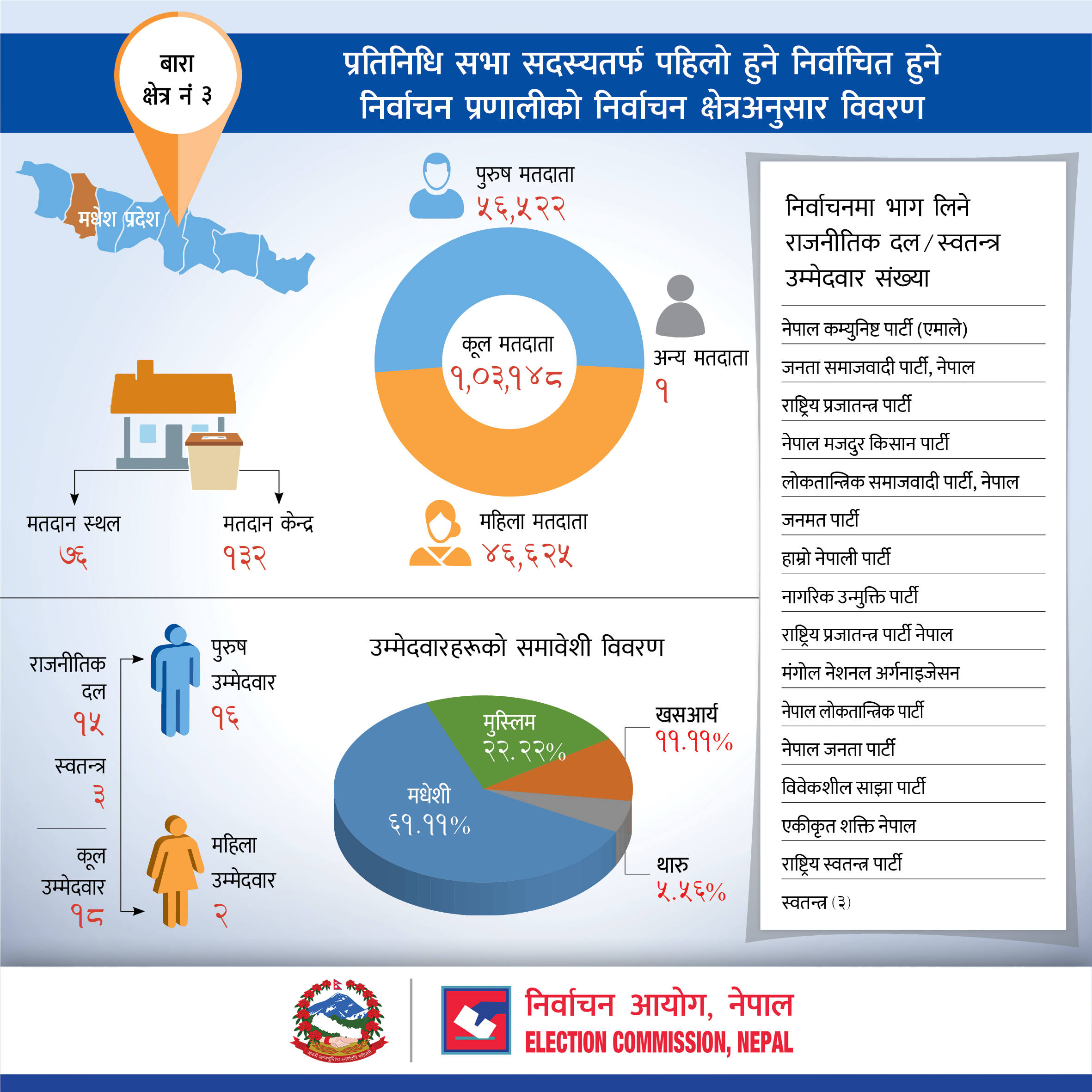प्रतिनिधि सभा सदस्यतर्फ पहिलो हुने निर्वाचित हुने निर्वाचन प्रणालीको बारा जिल्लाको निर्वाचन क्षेत्रअनुसार विवरण