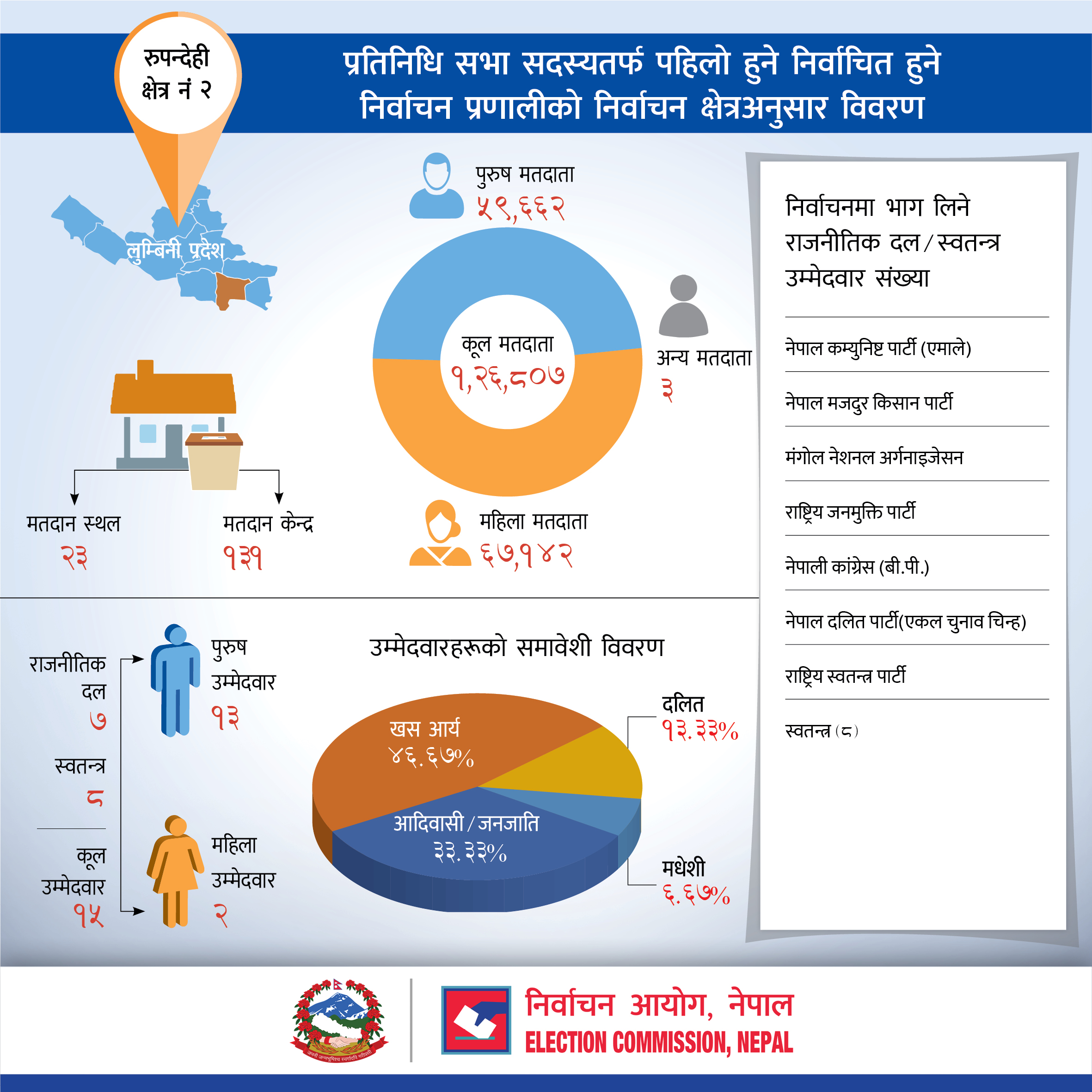 प्रतिनिधि सभा सदस्यतर्फ पहिलो हुने निर्वाचित हुने निर्वाचन प्रणालीको रुपन्देही जिल्लाको निर्वाचन क्षेत्रअनुसार विवरण