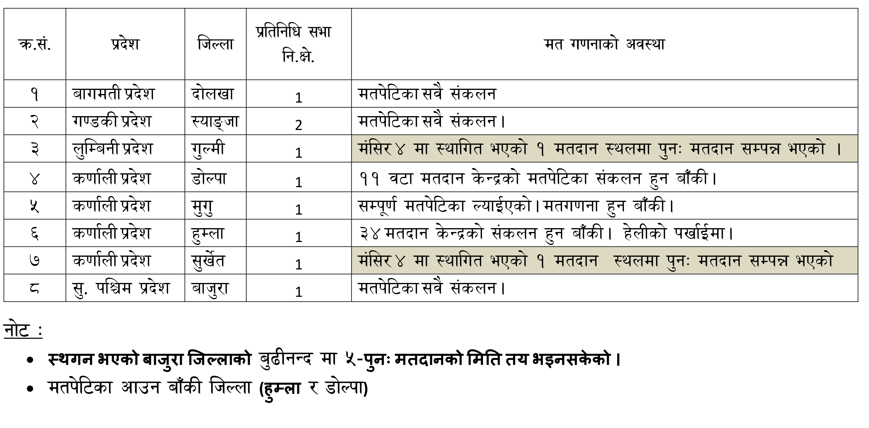 मतगणना हुन बाँकी रहेका निर्वाचन क्षेत्रहरु