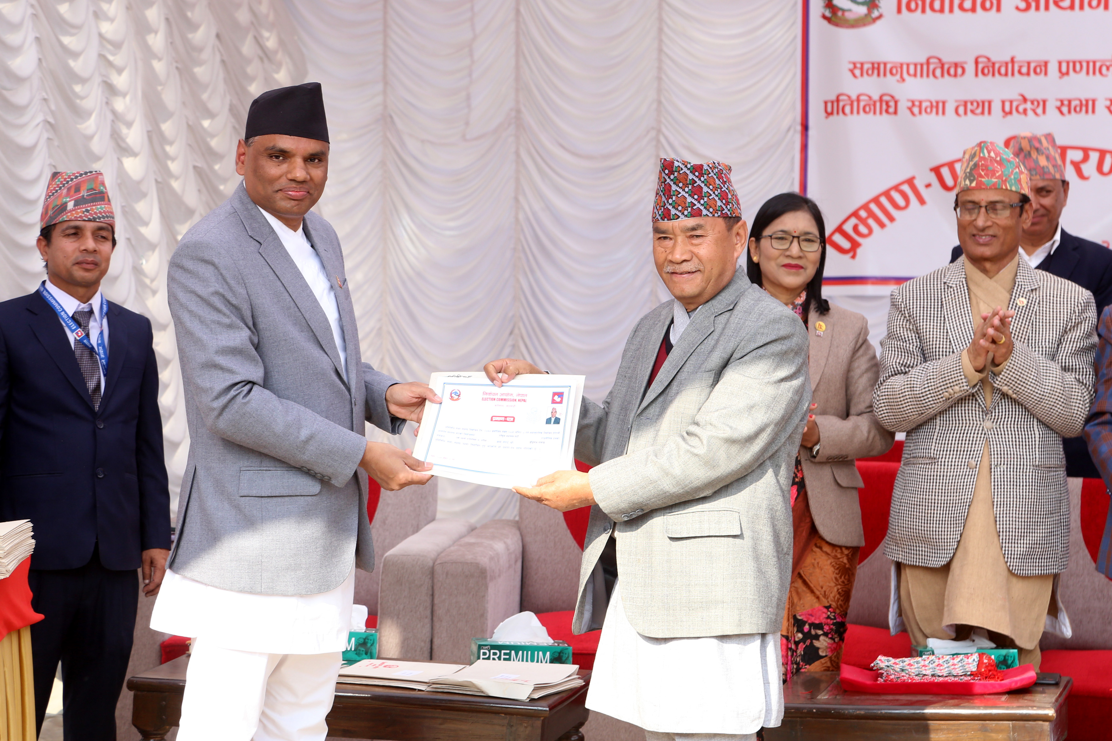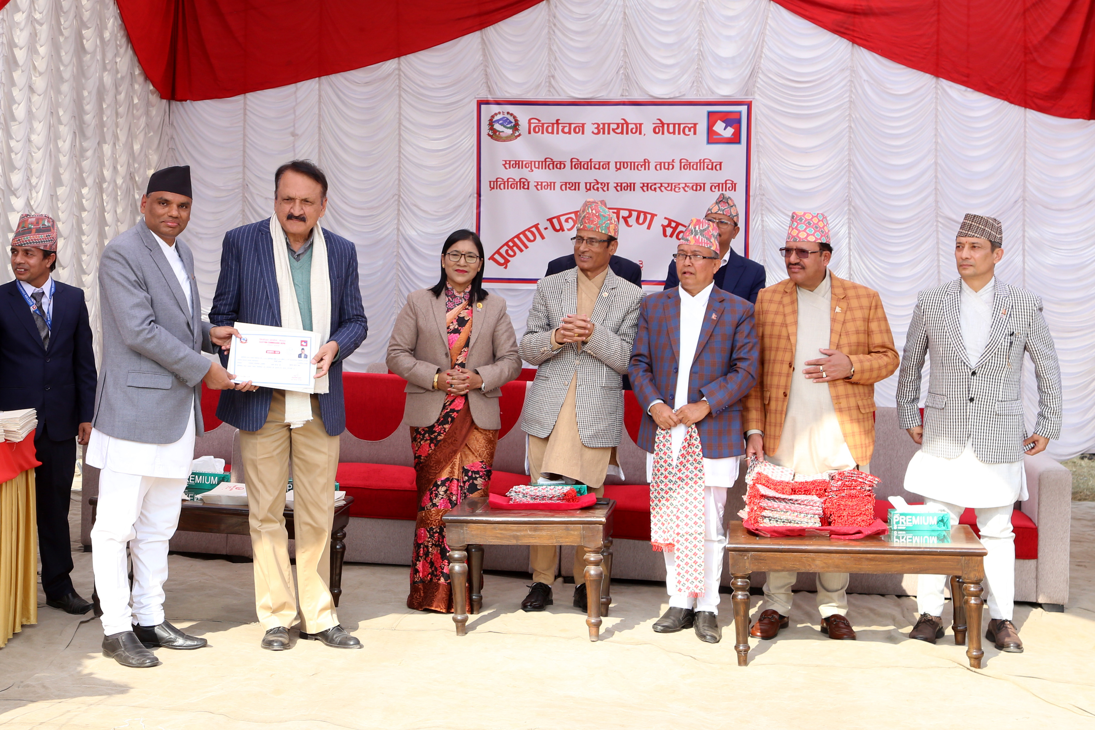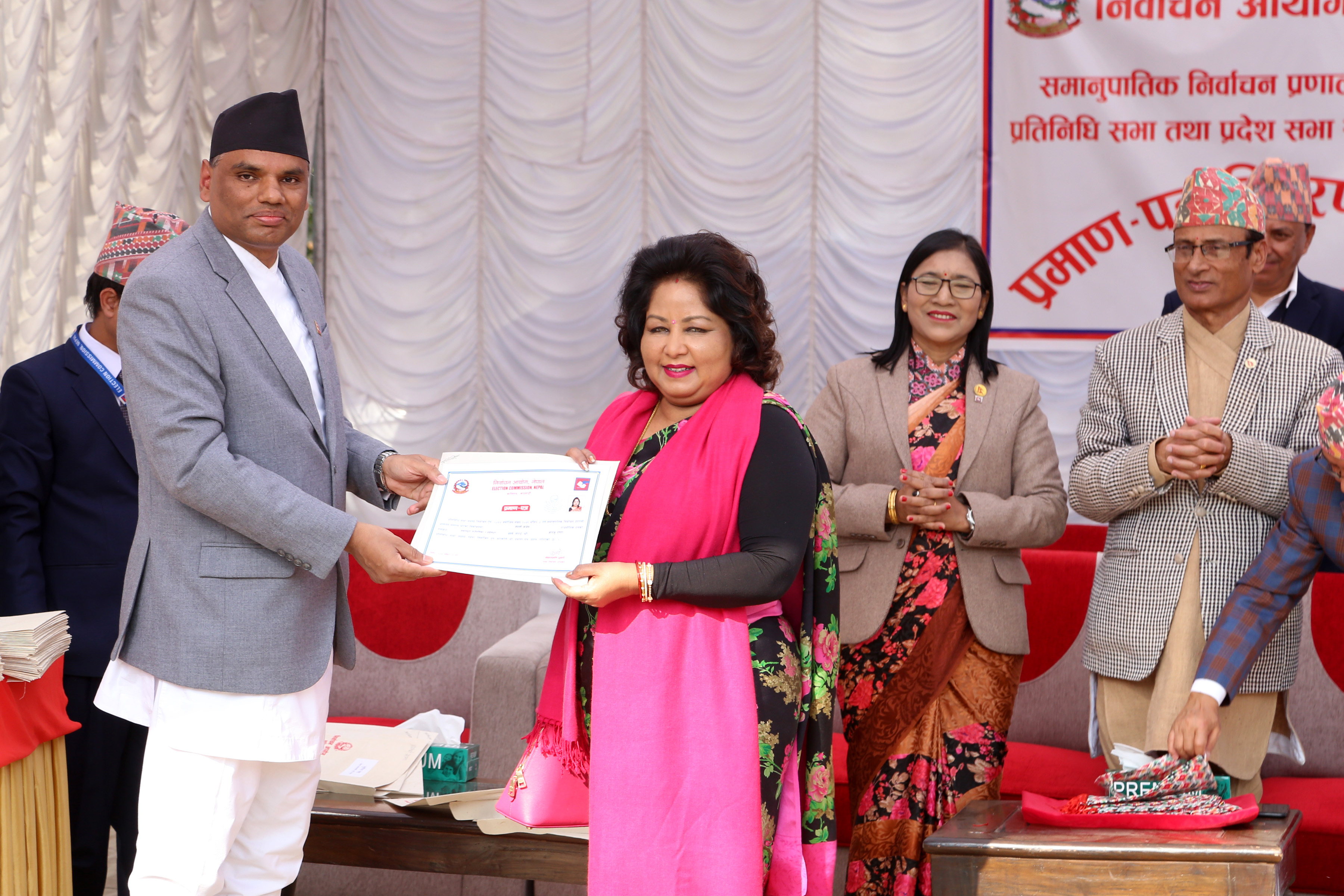समानुपातिक निर्वाचन प्रणालीतर्फका निर्वाचित सांसदलाई प्रमाणपत्र वितरण
